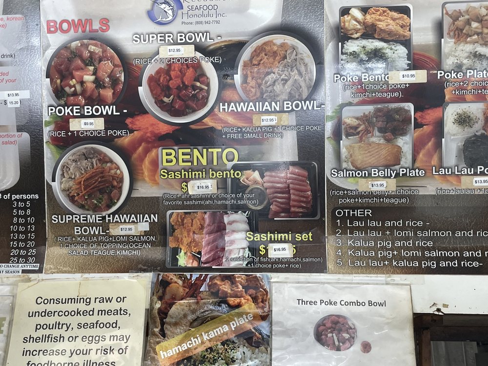 Rice, Lau Lau, kalua pig, 1 choice of poke, and free small drink.
