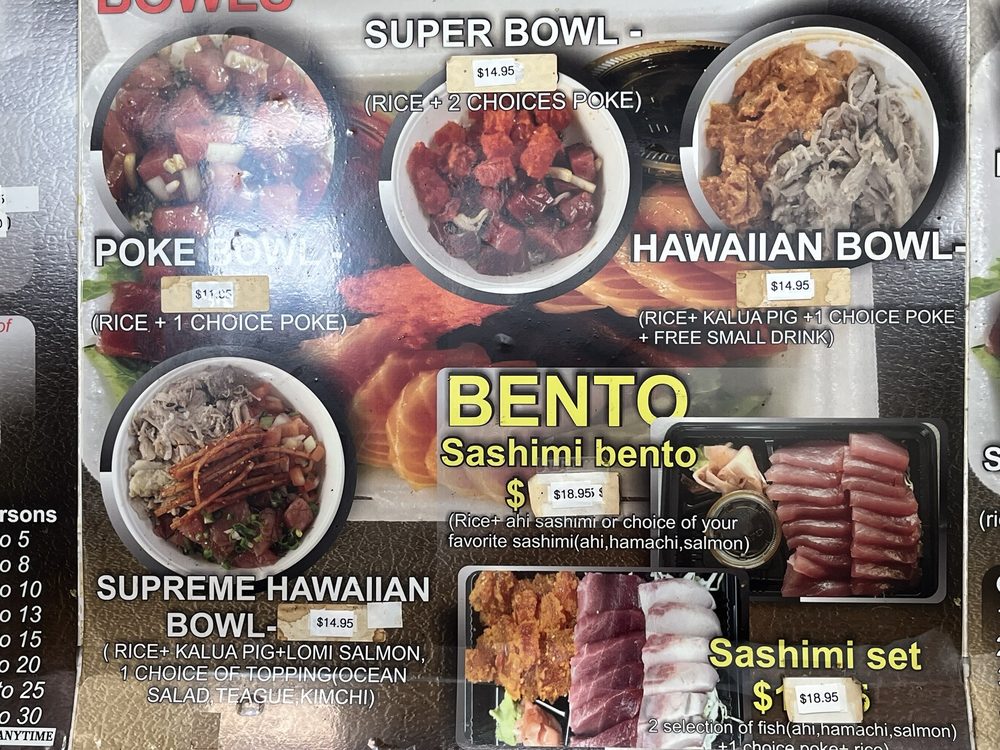 2 selections of sashimi plus 1 choice of poke, plus rice.